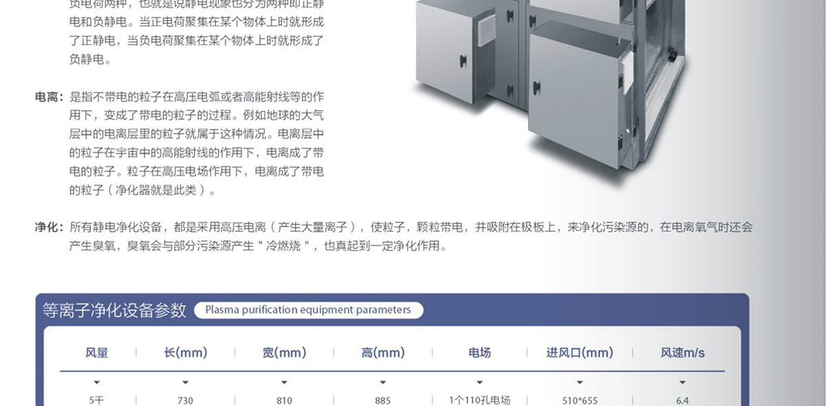 所有靜電凈化設備,都是采用高壓電離(產生大量離子) ,使粒子,顆粒帶電,并吸附在極板上,來凈化污染源的,在電離氧氣時還會產生臭氧,臭氧會與部分污染源產生"冷燃燒",也真起到- -定凈化作用。